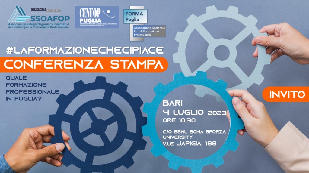 Le Associazioni ASSOAFOP, CENFOP PUGLIA e FORMA PUGLIA hanno indetto per martedì 4 luglio 2023 [ore 10,30 – BARI c/o SSML Bona Sforza University V.le Japigia, 188] la